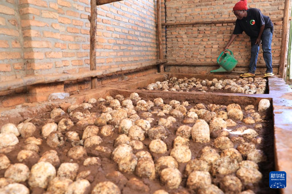 在盧旺達首都基加利,42歲的萊昂尼達斯·穆希米伊馬納經(jīng)營著當?shù)匾?guī)模最大的食用菌培育工坊。他曾前往中國參加菌草技術(shù)培訓,回國后成立了這家工坊。