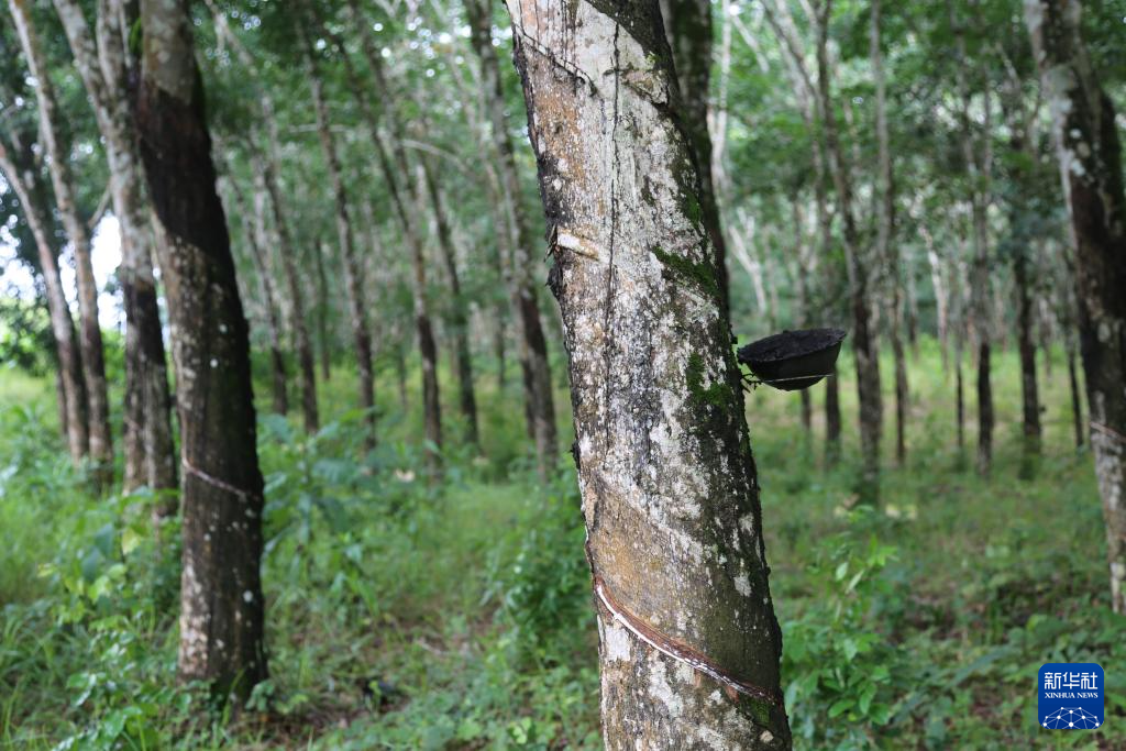 這是2024年6月10日拍攝的位于科特迪瓦南部城鎮(zhèn)達布郊區(qū)的三葉橡膠樹林。新華社記者 張健 攝