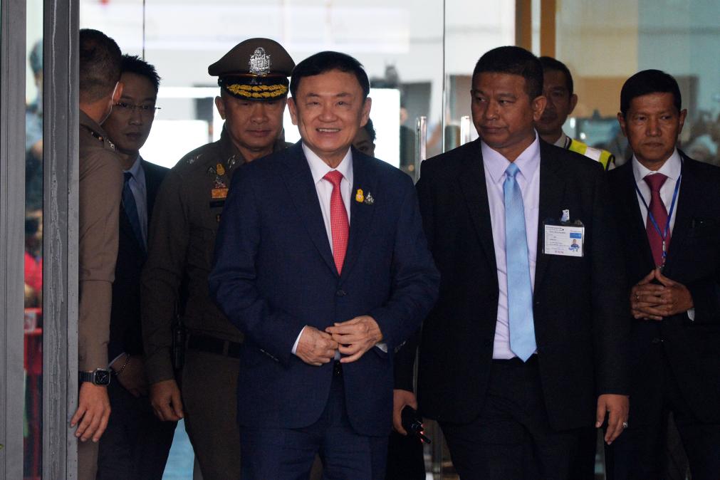 2023年8月22日,泰國前總理他信(中)抵達(dá)曼谷廊曼機(jī)場。新華社發(fā)(拉亨攝)
