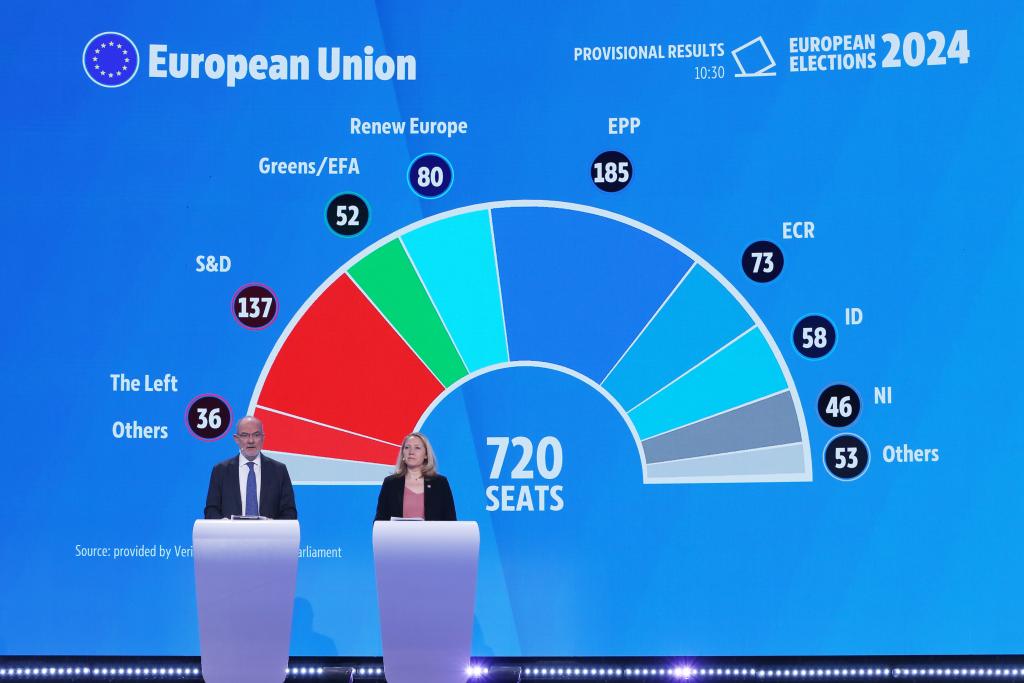 在6月的歐洲議會選舉中,盡管中間偏右的歐洲人民黨黨團和中間偏左的社民黨黨團分別保持歐洲議會第一、第二大黨團地位,但右翼和極右翼勢力席位有所增加,法國、德國等歐盟國家的極右翼政黨得票率均領(lǐng)先執(zhí)政黨,歐洲政治光譜明顯“右移”。
