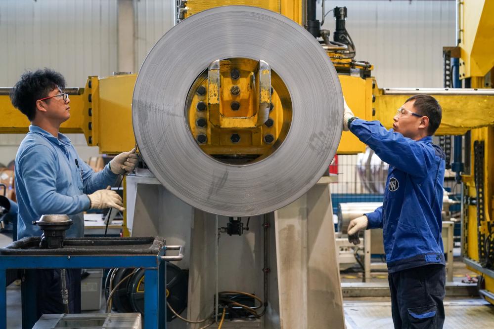 2023年3月16日,工人在位于太倉市高新區(qū)的威爾斯新材料(太倉)有限公司生產(chǎn)車間內(nèi)進行加工作業(yè)。新華社記者李博攝