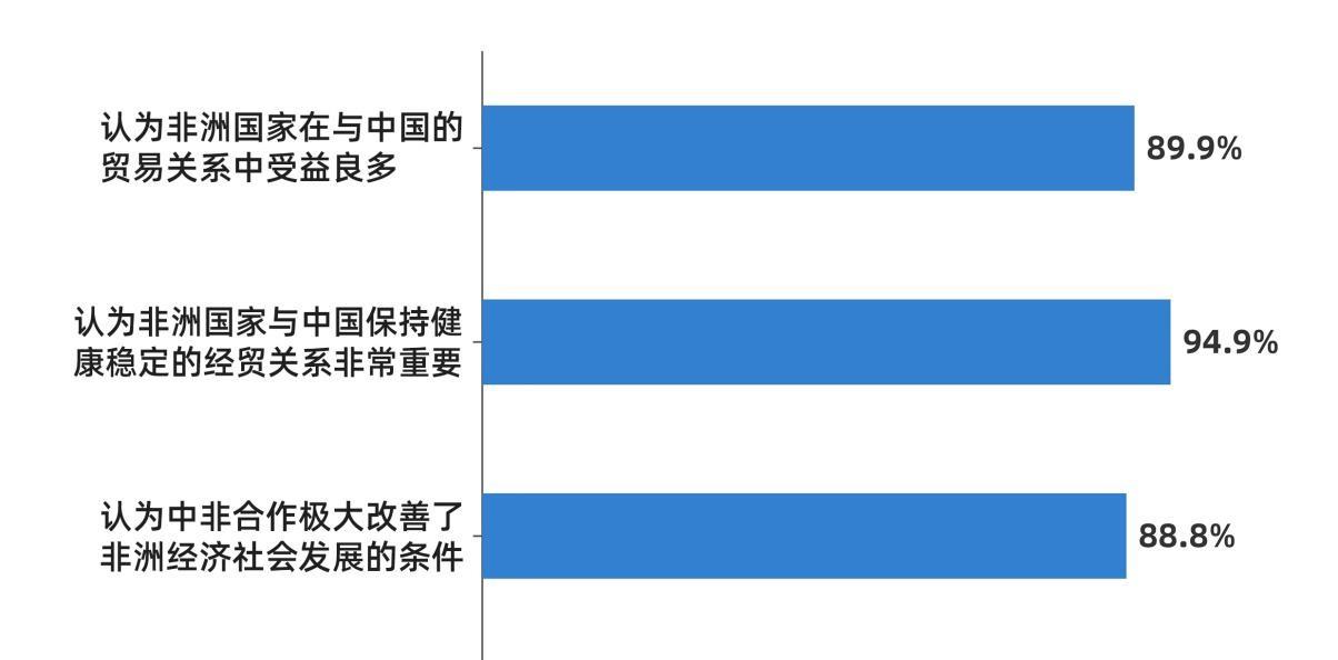 作為非洲實現(xiàn)現(xiàn)代化目標的同行者,高效務實的中非合作為中非關系健康穩(wěn)定發(fā)展注入了不竭動力,也獲得非洲青年的高度肯定。中非在共建“一帶一路”倡議和中非合作論壇等機制平臺上不斷深化合作,成果涵蓋經(jīng)貿(mào)、基建、民生等多個領域,新時代中非命運共同體建設不斷走深走實,持續(xù)造福雙方民眾。調(diào)查中,89.9%的受訪青年認為非洲國家在與中國的貿(mào)易關系中受益良多,94.9%的受訪青年認為非洲國家與中國保持健康穩(wěn)定的經(jīng)貿(mào)關系非常重要,88.8%的受訪青年認為中非合作極大改善了非洲經(jīng)濟社會發(fā)展的條件,為非洲帶來了寶貴發(fā)展機遇。
