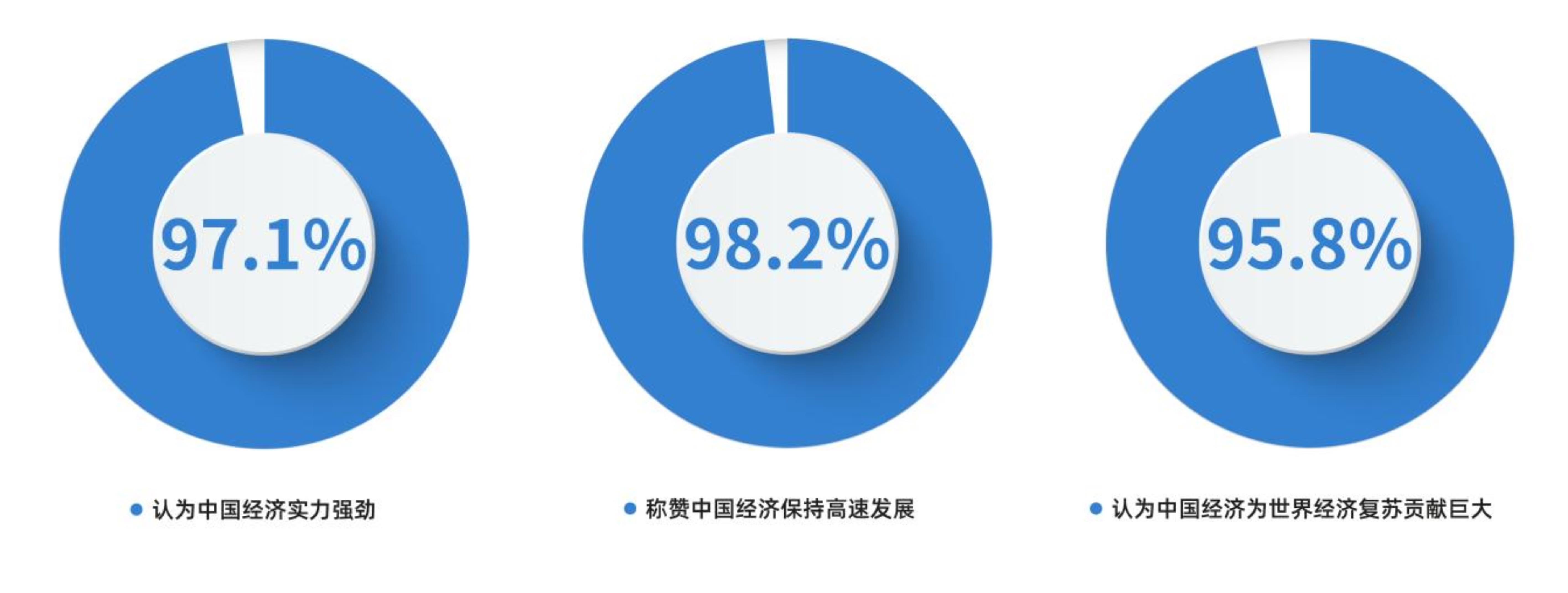 受訪青年超高的對華好感度主要源于對中國式現(xiàn)代化發(fā)展理念與成就的高度認可,經(jīng)濟與科技領域表現(xiàn)尤為突出。調(diào)查中,97.1%的受訪青年認為中國經(jīng)濟實力強勁,98.2%的受訪青年稱贊中國經(jīng)濟保持高速發(fā)展,95.8%的受訪青年認為中國經(jīng)濟為世界經(jīng)濟復蘇貢獻巨大。