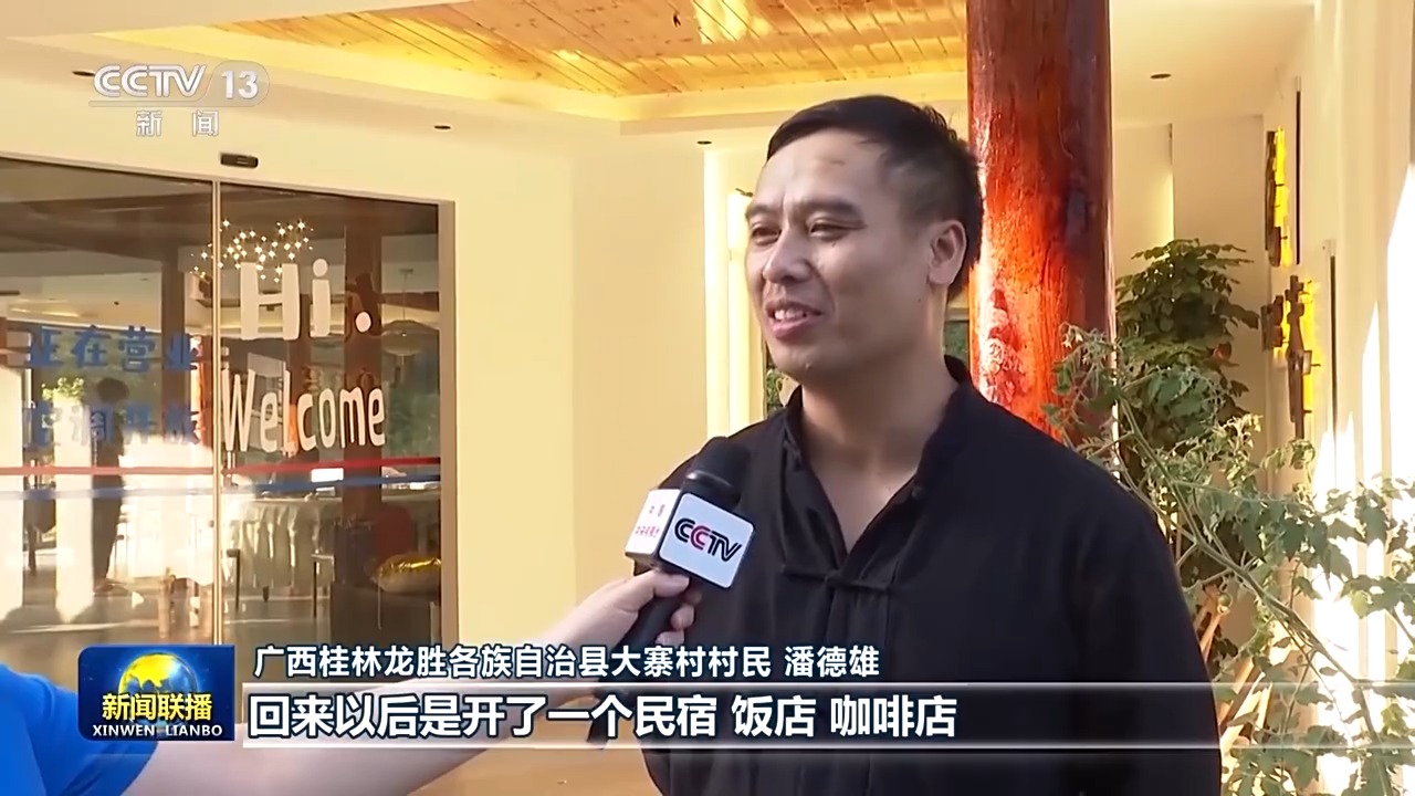 廣西桂林龍勝各族自治縣大寨村村民 潘德雄:回來以后開了一個民宿、飯店、咖啡店。各民族的一些兄弟也都到我們這邊做生意,大家都相處得非常好。