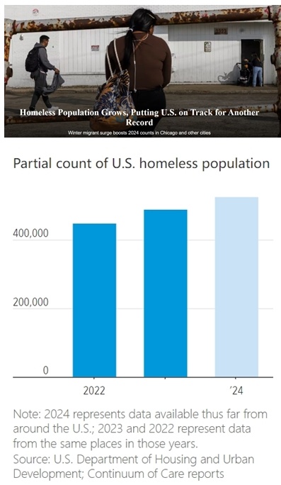 日前,美國《華爾街日報》對全美超過250個覆蓋城市和農(nóng)村地區(qū)的無家可歸者服務(wù)組織的數(shù)據(jù)進行分析后發(fā)現(xiàn),上述地區(qū)無家可歸者的數(shù)量較去年同期增加了約10%。這一趨勢表明,美國今年無家可歸者人數(shù)可能會超過2023年估計的65.3萬人,這是自2007年有記錄以來的最高數(shù)字。