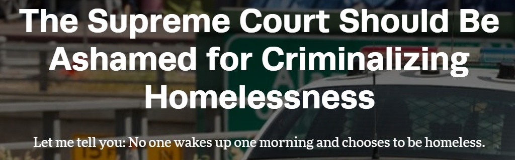 代表無家可歸者的律師們稱,不敢相信憲法允許城市懲罰無家可歸的居民,僅僅因為他們在無處可去的情況下,裹著毯子在戶外睡覺。
