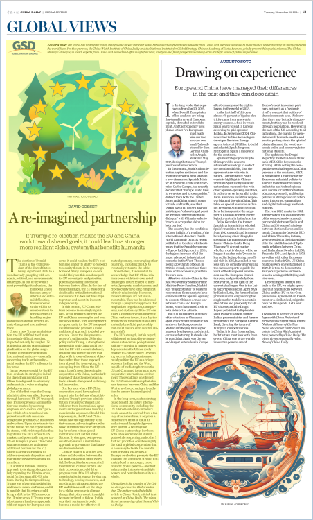 從長遠來看,這一戰(zhàn)略有利于整個國際社會——包括美國在內(nèi)。如今,全球領導地位不可能來自單邊主義的幻想——它要求拿出切實行動,建設性地推動包容、公正的全球治理體系發(fā)展。中歐伙伴關系應重新設計,讓雙方在尊重彼此優(yōu)先事項的同時,朝著共同的目標努力,這將為全球合作應對世界上最緊迫挑戰(zhàn)樹立典范。如果特朗普的再次上臺能夠促使歐盟采取這種做法,那倒也未嘗不是件好事,因為它最終可能會催生一個更強大、更有韌性的全球體系——一個平衡多個大國利益、造福全體人類的體系。