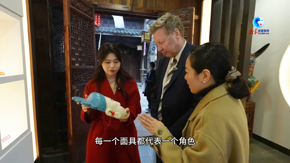 近期,德國(guó)人艾哈德來到安徽省池州市貴池區(qū)儺文化主題景區(qū)儺仙鎮(zhèn),通過欣賞非遺儺戲表演、體驗(yàn)儺面具、觀看儺戲主題演出等感受中國(guó)年戲文化。作為第一批國(guó)家級(jí)非物質(zhì)文化遺產(chǎn)代表性項(xiàng)目的池州儺戲,是安徽省古老稀有的劇種之一,有“戲曲活化石”之稱。
