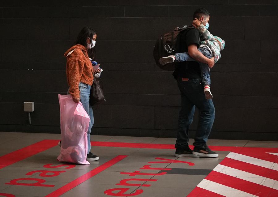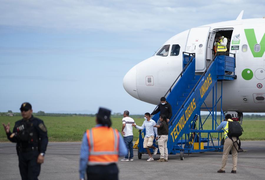 2025年2月13日,在洪都拉斯拉利馬市,被遣返移民抵達(dá)機(jī)場(chǎng)。新華社發(fā) 戴維 攝