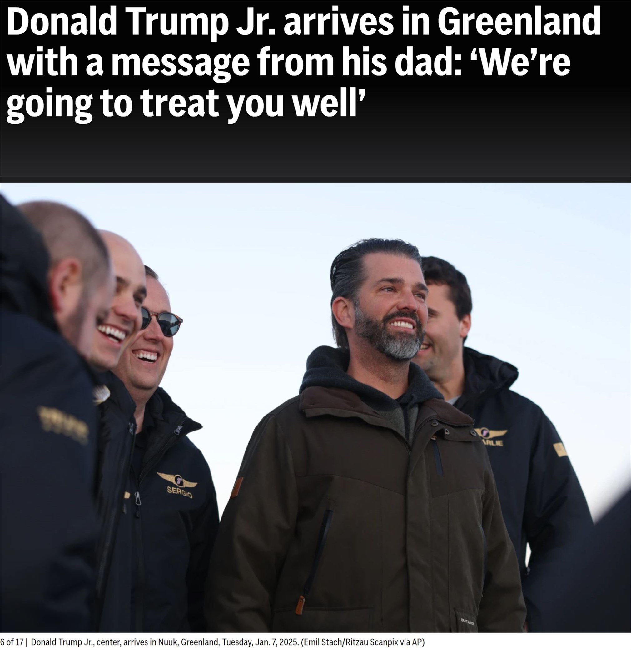 為了讓“奪島”計劃早日成真,除了美國代表團(tuán)不請自來的訪問計劃,特朗普長子小唐納德·特朗普早在年初就已經(jīng)借私人旅游的名頭去島上“打前站”。