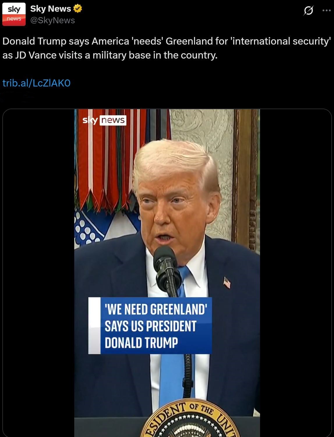 針對格陵蘭島各界將萬斯28日的到訪視為“一種危險的挑釁”,特朗普辯稱,美方代表團(tuán)的訪問“是友好的,不是挑釁”。