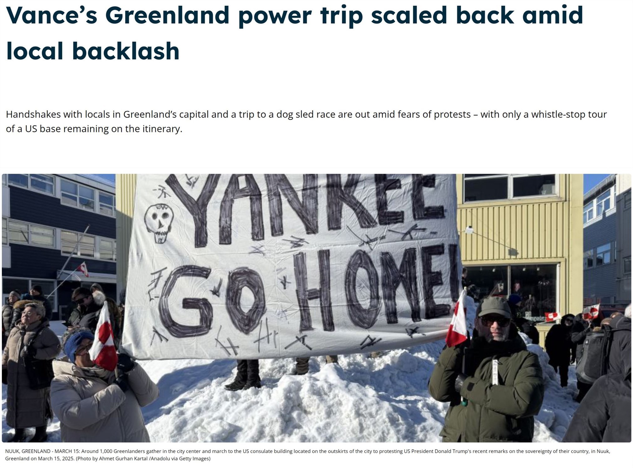 事實上,萬斯一行此次對格陵蘭島的訪問相當(dāng)不受歡迎。