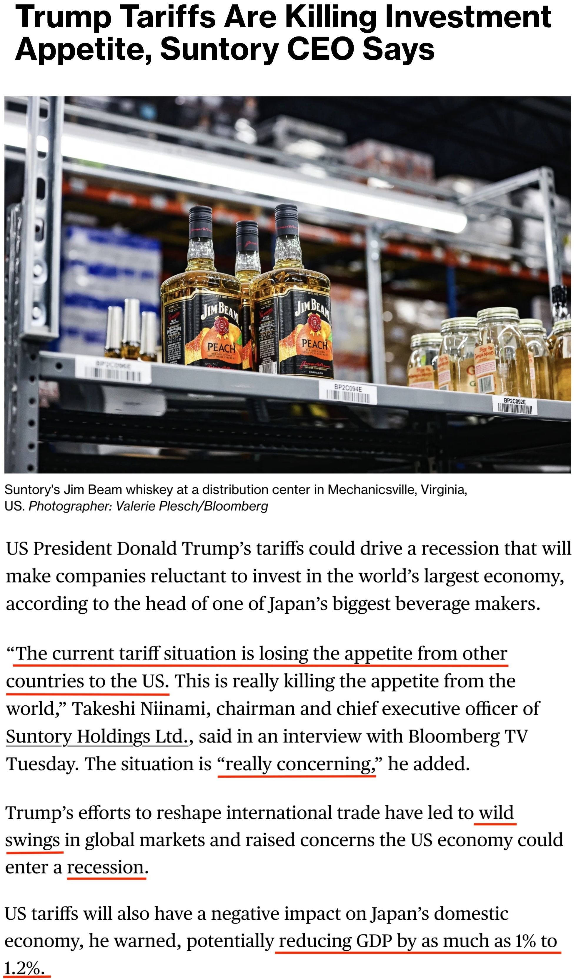 日本首相辦公室高級(jí)經(jīng)濟(jì)顧問(wèn)、日本最大飲料制造商之一三得利公司董事長(zhǎng)兼首席執(zhí)行官新浪剛史22日接受彭博社采訪時(shí)警告,美國(guó)的關(guān)稅措施已導(dǎo)致全球市場(chǎng)劇烈波動(dòng),可能引發(fā)美國(guó)經(jīng)濟(jì)衰退,并削弱其他國(guó)家對(duì)美國(guó)的投資意愿。