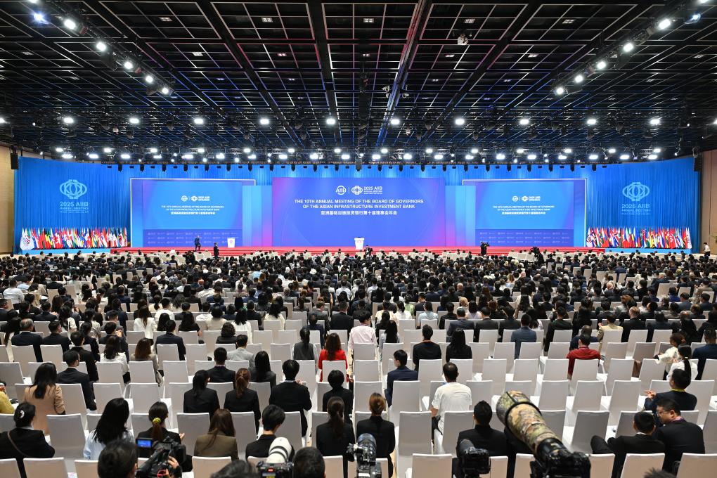 這是6月26日拍攝的亞洲基礎(chǔ)設(shè)施投資銀行第十屆理事會(huì)年會(huì)開幕式現(xiàn)場。新華社記者李鑫攝