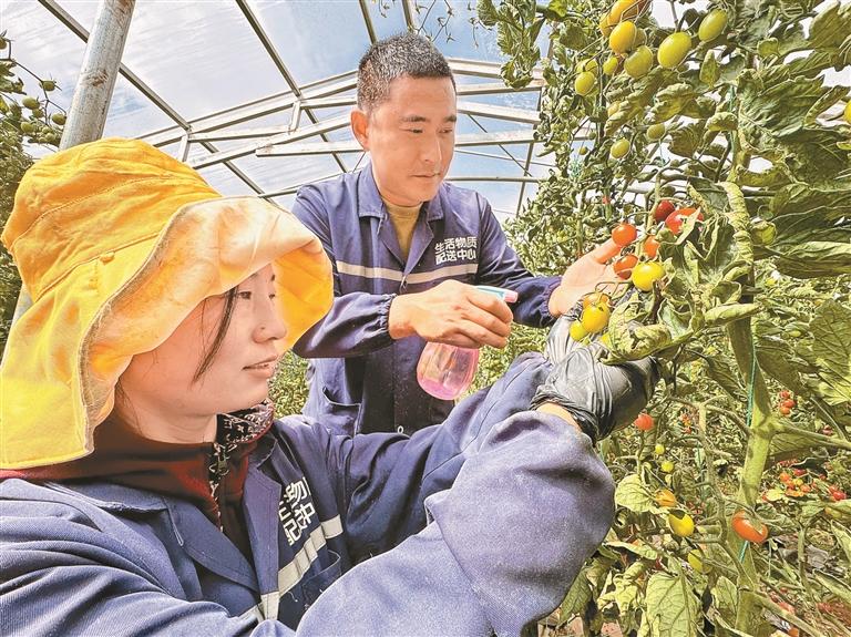 圖為昌都市貢覺(jué)縣現(xiàn)代農(nóng)業(yè)產(chǎn)業(yè)園區(qū)內(nèi),技術(shù)員在大棚內(nèi)教授當(dāng)?shù)厝罕娦》逊N植技術(shù)。記者 白瑪澤旺 次仁平措 攝