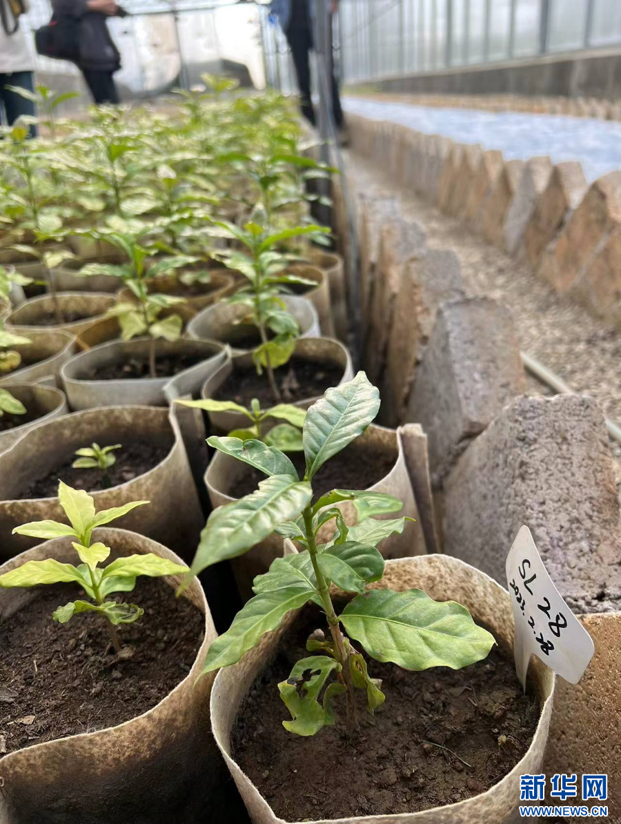 山頂一號咖啡莊園自行培育的咖啡苗(4月2日攝)。新華網(wǎng) 楊楨宇 攝