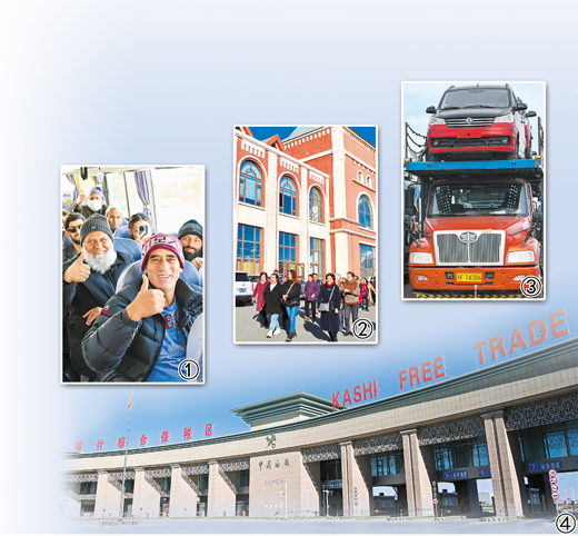 圖①:新疆紅其拉甫口岸,出境旅客在國(guó)際道路旅客班車上等待發(fā)車。新華社記者 丁 磊攝;圖②:新疆巴克圖口岸中哈邊民互市絲路文化商品城。新華社記者 茍立鋒攝;圖③:新疆霍爾果斯公路口岸等待出口的車輛。新華社記者 趙 戈攝;圖④:新疆喀什綜合保稅區(qū)。新華社記者 丁 磊攝