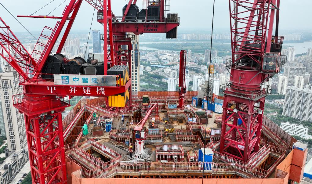 4月12日,工人在??谑泻D现行捻?xiàng)目施工作業(yè)(無人機(jī)照片)。新華社記者 楊冠宇 攝