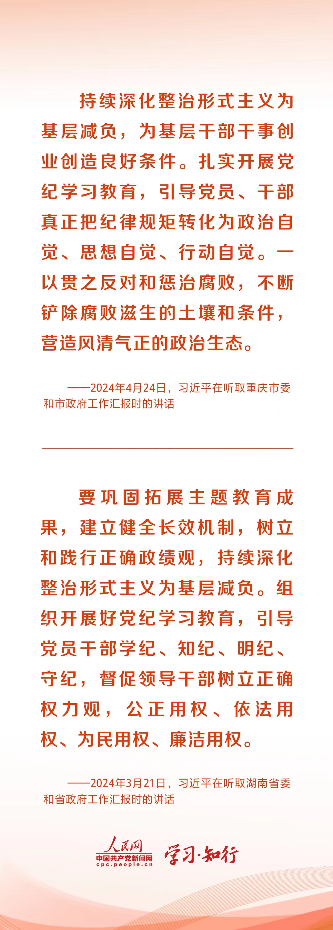 在新時(shí)代推動(dòng)西部大開發(fā)座談會(huì)上,習(xí)近平再次明確,“鞏固拓展主題教育成果,抓好黨紀(jì)學(xué)習(xí)教育,持續(xù)整治形式主義為基層減負(fù)。”