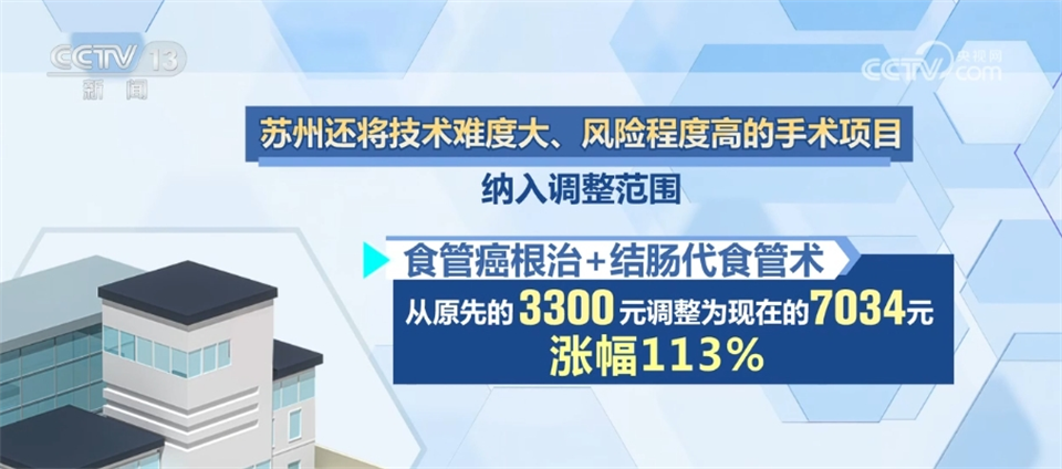 除了推進醫(yī)療機構(gòu)分級定價,蘇州市醫(yī)療服務(wù)價格改革對一些歷史價格長期偏低,不能體現(xiàn)技術(shù)勞務(wù)價值的項目進行調(diào)整。如骨髓活檢術(shù)的醫(yī)療服務(wù)價格由過去的65元調(diào)整為124元,漲幅91%;斷指再植術(shù)由過去的1800元調(diào)整為3275元,漲幅82%。此外,蘇州還將技術(shù)難度大、風(fēng)險程度高的手術(shù)項目納入調(diào)整范圍,調(diào)整的手術(shù)項目占比約60%,并對四級手術(shù)優(yōu)先調(diào)整,共調(diào)整四級手術(shù)項目110項,占比約13%。如食管癌根治+結(jié)腸代食管術(shù),從原先的3300元調(diào)整為現(xiàn)在的7034元,漲幅113%。調(diào)整后,醫(yī)保仍按甲類項目全額報銷,上漲費用全部由醫(yī)?;鹬Ц?,患者的個人負擔(dān)沒有增加多少。