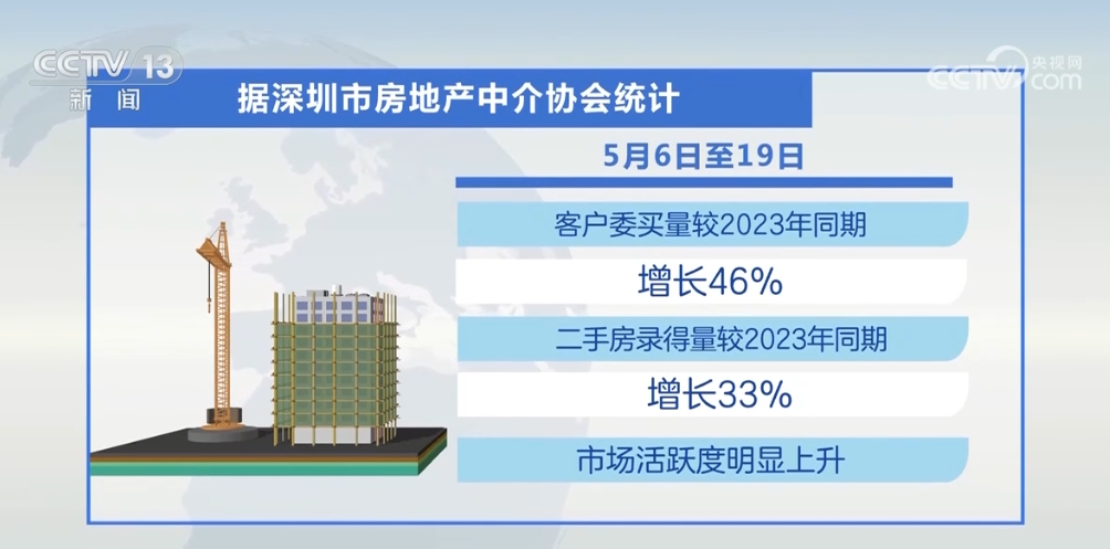 據(jù)深房中協(xié)統(tǒng)計,5月6日至19日,深圳市客戶委買量較2023年同期增長46%,二手房錄得量較2023年同期增長33%,市場活躍度明顯上升。