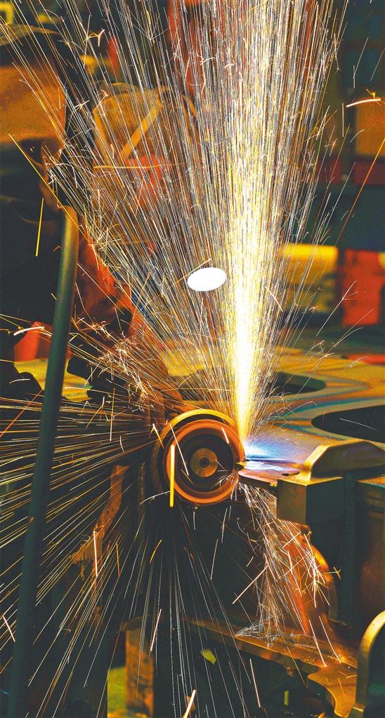 ▼5月28日,中車長客轉(zhuǎn)向架事業(yè)部焊接產(chǎn)線組,員工在進(jìn)行動車組構(gòu)架橫梁焊后修磨作業(yè)。