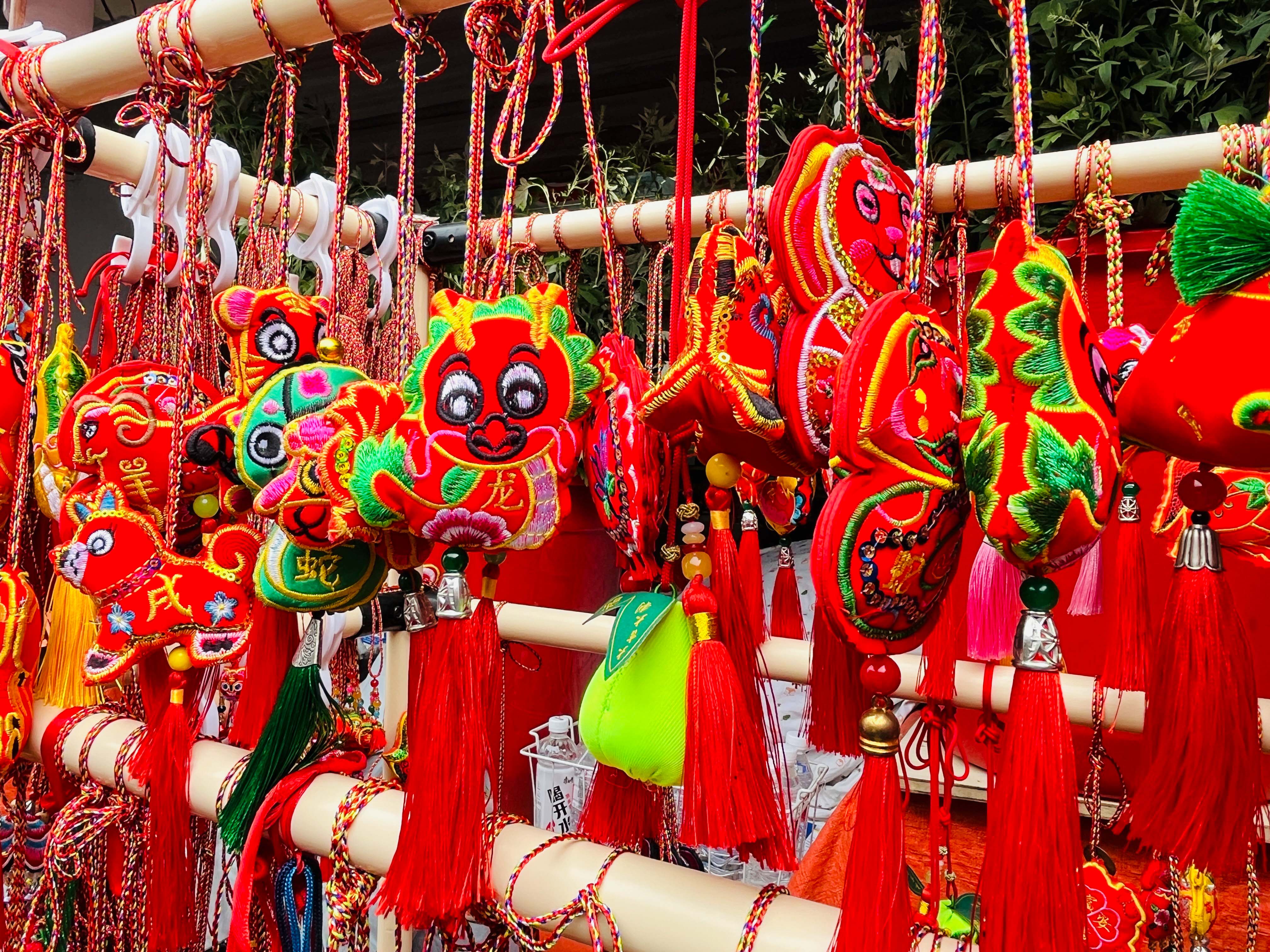 圖為琳瑯滿(mǎn)目的刺繡香囊。人民網(wǎng)記者 何晶茹攝。