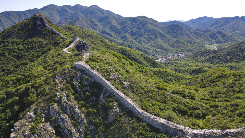 石峽關長城和長城腳下的石峽村(2024年6月1日攝,無人機照片)。新華社記者 陳鐘昊 攝
