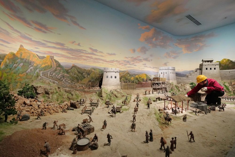 工人在山海關中國長城博物館展廳布展(2024年4月11日攝)。新華社記者 楊世堯 攝