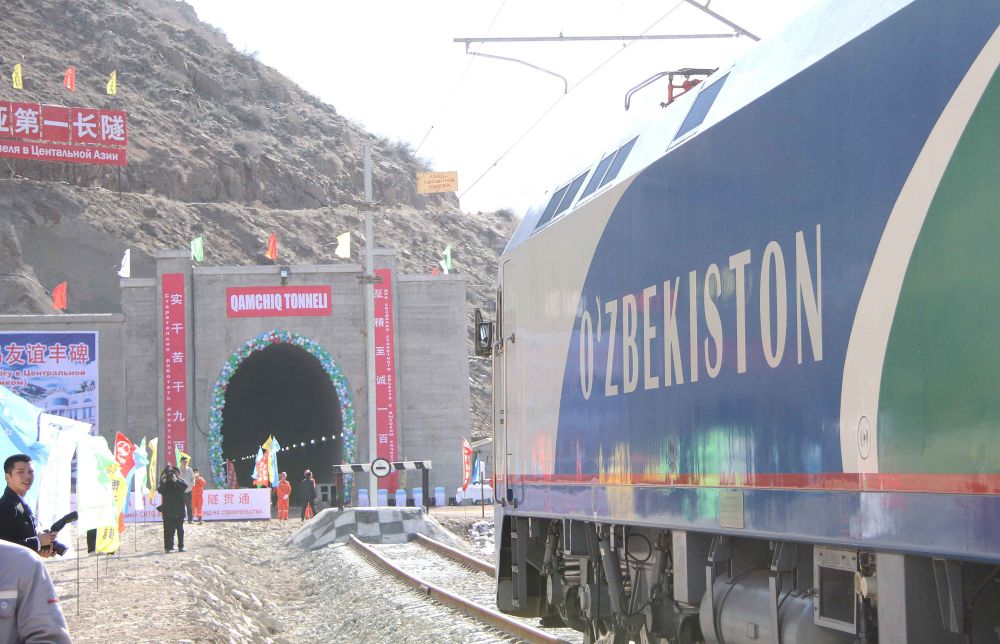 2016年2月27日,一列專列停在烏茲別克斯坦安格連至琶布鐵路甘姆奇克隧道進(jìn)口。這一隧道長(zhǎng)19.26公里,為中亞第一長(zhǎng)隧、烏茲別克斯坦一號(hào)工程,也是“絲綢之路”經(jīng)濟(jì)帶鐵路網(wǎng)中吉烏鐵路的重要一環(huán)。新華社記者沙達(dá)提攝