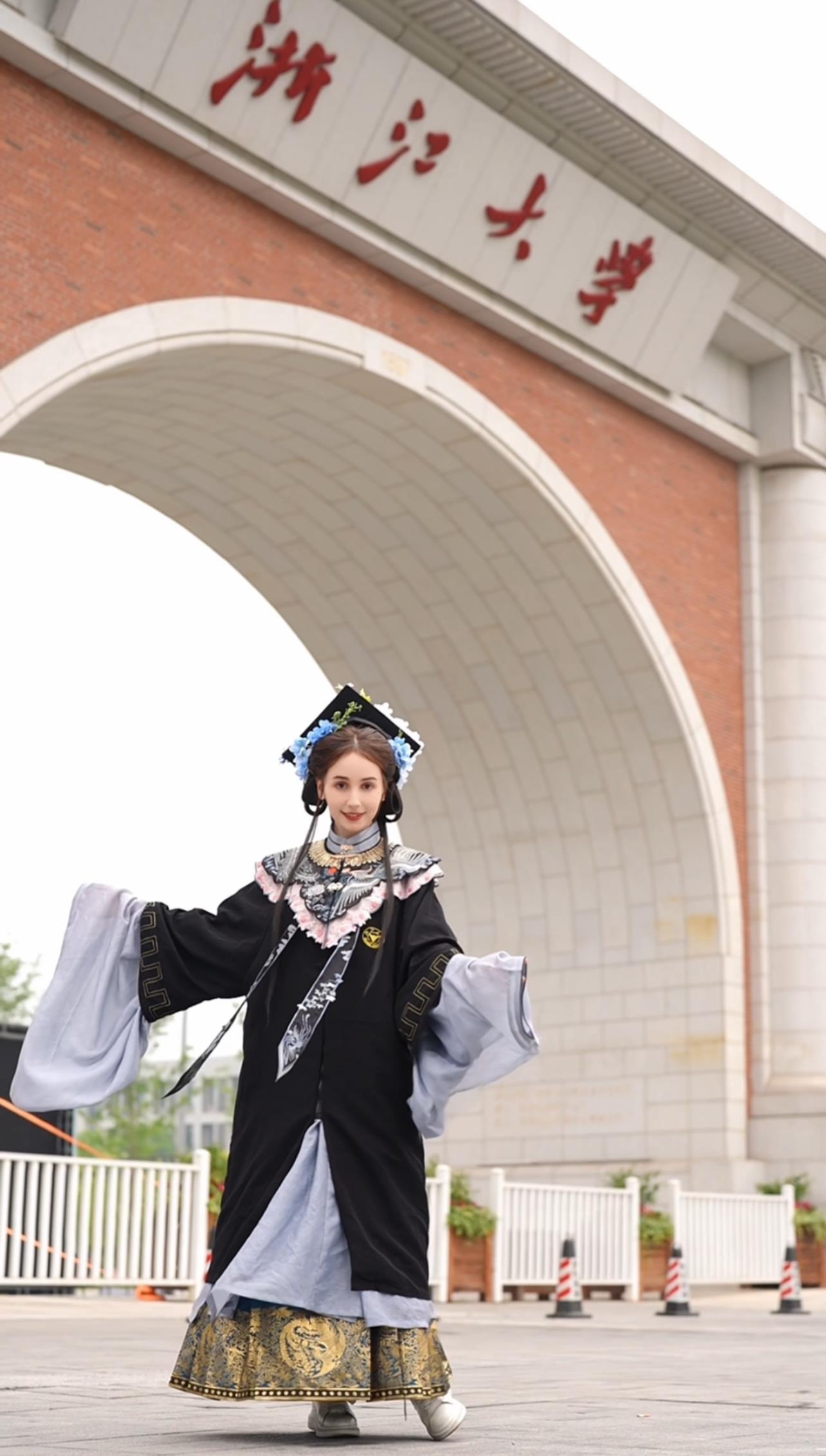 安心冉:所有的評論都在說很漂亮呀或者很適合你,或者恭喜你畢業(yè)了,我就覺得很感動。因為我是讀元明清文學,能穿明代的衣服畢業(yè),我很開心。我穿的那套學士服云肩的形狀就是四合如意,蘊含了人生順遂的美好祝福。胸前的圖案是丹鳳朝陽,它寓意著賢德的人前途光明。我覺得中國的學士服比西方的學士服更有意義。