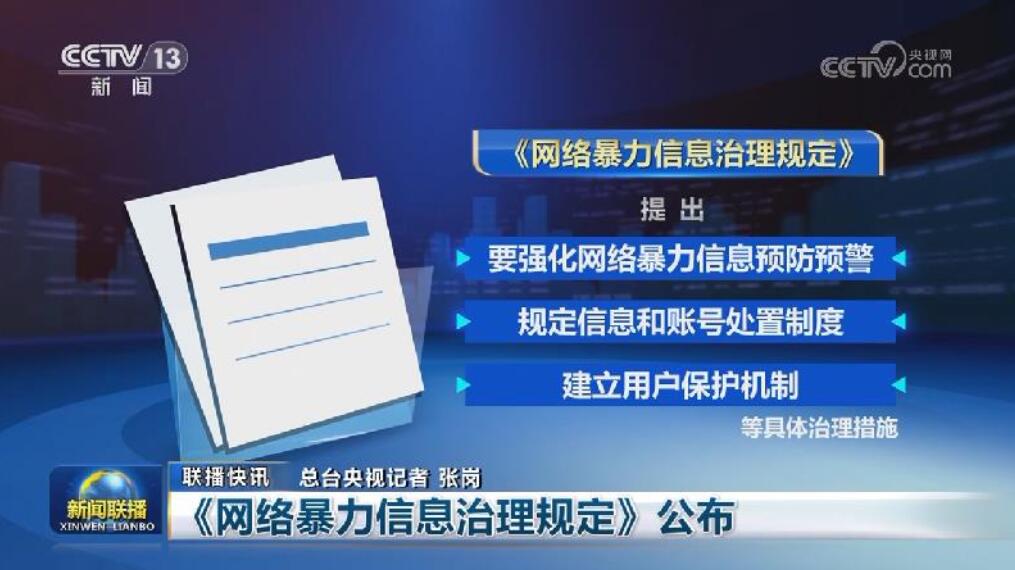 近日,國家互聯(lián)網信息辦公室聯(lián)合公安部、文化和旅游部、國家廣播電視總局公布《網絡暴力信息治理規(guī)定》,提出要強化網絡暴力信息預防預警、規(guī)定信息和賬號處置制度、建立用戶保護機制等具體治理措施。《規(guī)定》自2024年8月1日起施行。