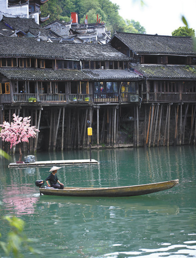 湖南湘西土家族苗族自治州鳳凰古城的吊腳樓沿沱江而建,鱗次櫛比,錯落有致。古色古香的建筑通風(fēng)防潮,避暑御寒,極具工藝審美和文物研究價值。圖為鳳凰古城吊腳樓一瞥。
