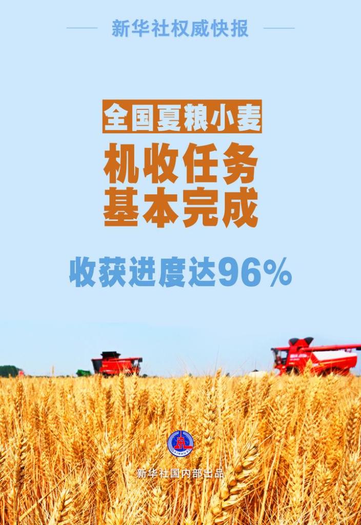 目前,全國夏糧小麥?zhǔn)斋@進(jìn)度已達(dá)96%,“三夏”小麥機(jī)收任務(wù)基本完成。