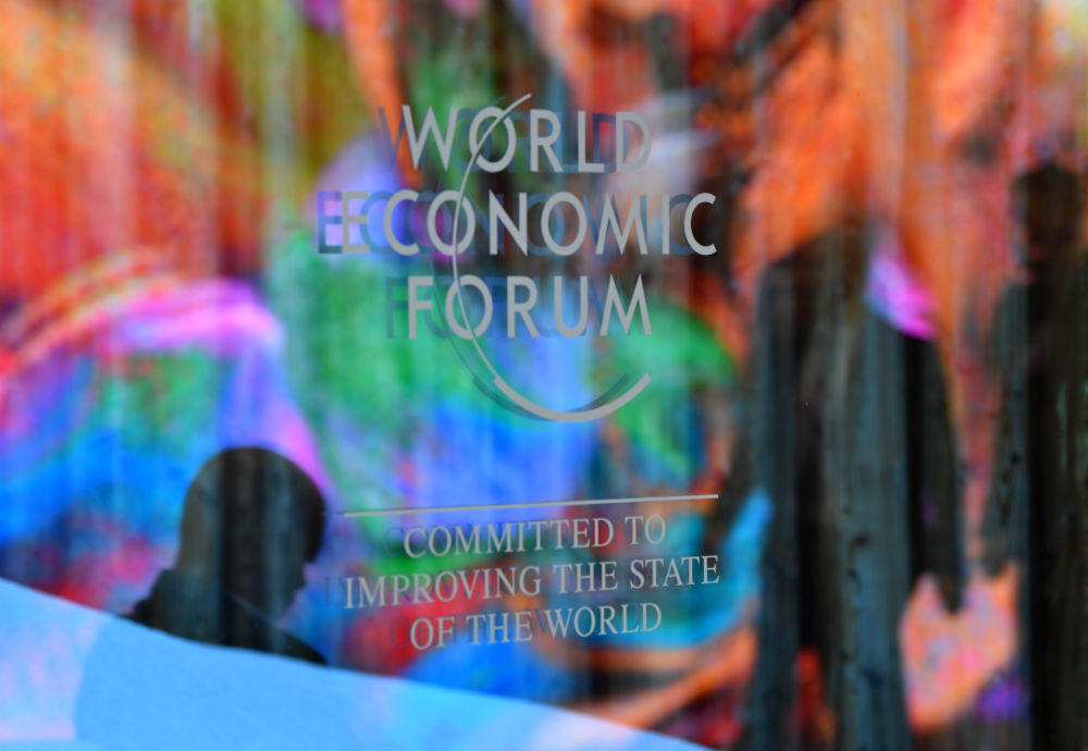 ↑在瑞士達沃斯拍攝的世界經(jīng)濟論壇標識。