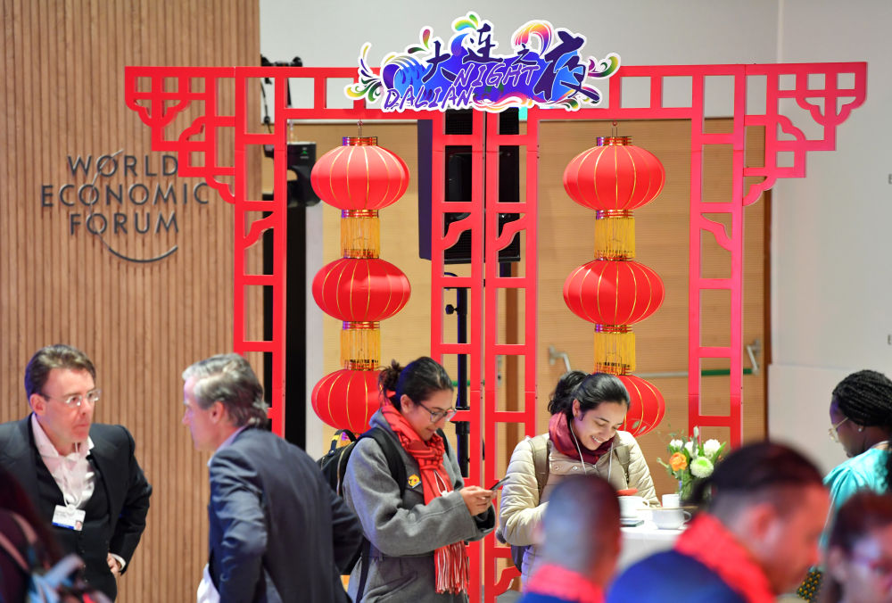 ↑2024年1月16日,與會者在瑞士達沃斯參加“大連之夜”招待會。