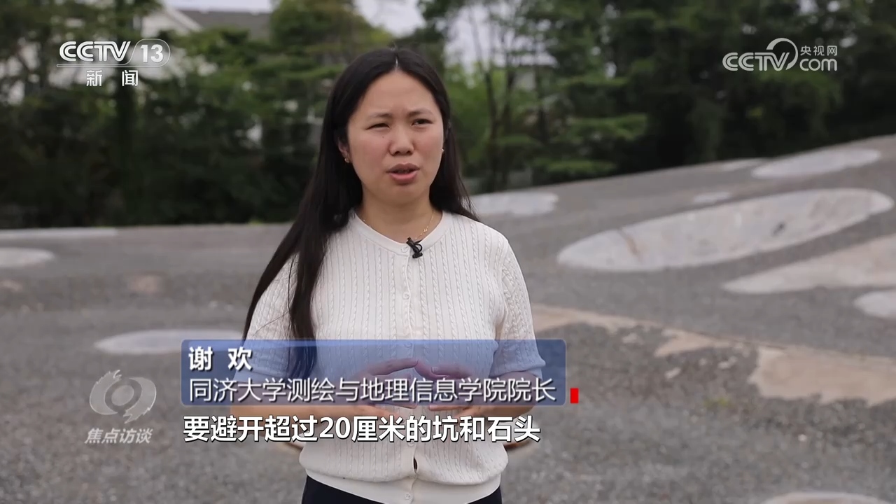 同濟大學測繪與地理信息學院院長謝歡:“對于著陸避障來說,主要在乎的是地面上是不是平坦。要避開超過20厘米的坑和石頭,所以我們在場地里面仿真了不同的場景,大大小小的坑和不同大小的石塊,盡可能還原在月球表面上可能會威脅安全著陸的場景。”