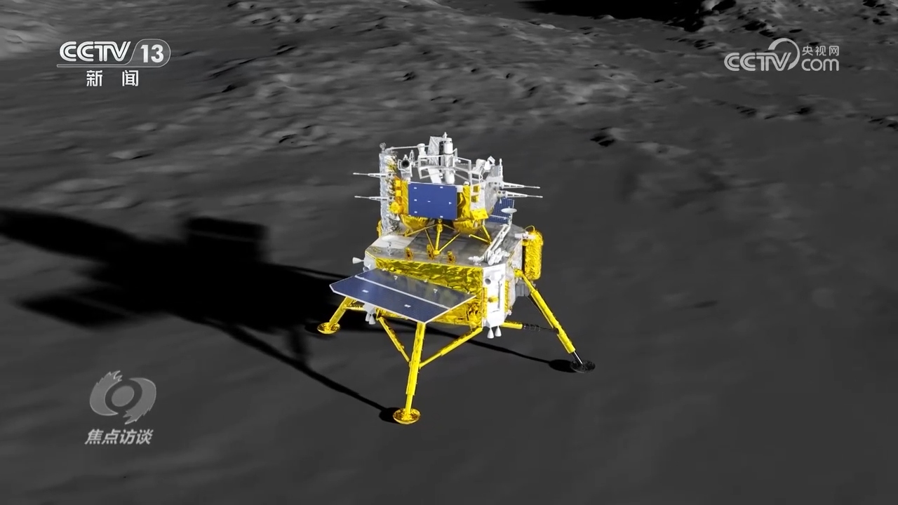 中國航天科技集團馬如奇:“只要發(fā)一條指令,它就把整個任務都給連貫起來了,比如觸月、采樣,然后到放樣,整個過程中只需要一條指令把它全給連起來就全部執(zhí)行了,這樣效率提高了?!?/p>