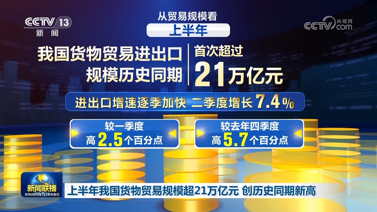 上半年我國(guó)貨物貿(mào)易規(guī)模超21萬(wàn)億元 創(chuàng)歷史同期新高