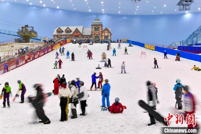 2024年1月14日,廣東省廣州市,民眾在熱雪奇跡室內(nèi)滑雪場練習(xí)滑雪,感受冰雪運動的魅力。 記者 陳驥旻 攝
