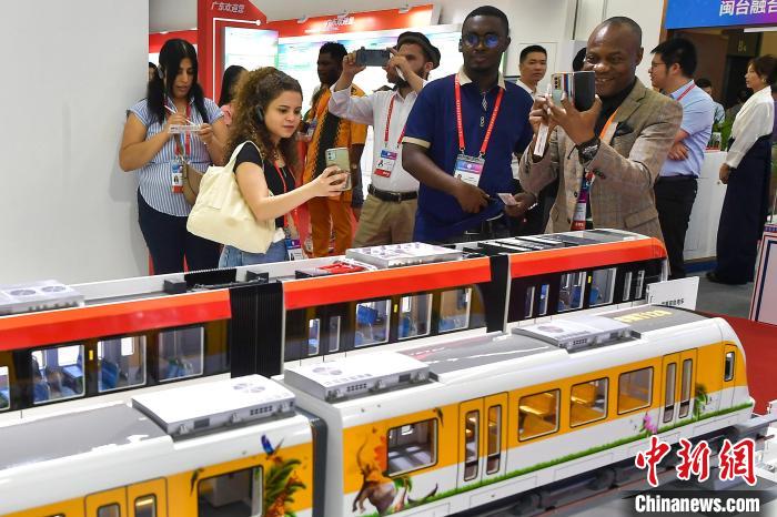 6月18日,第二十二屆中國·海峽創(chuàng)新項目成果交易會(簡稱“海創(chuàng)會”)在福建福州開幕。圖為參觀者在中國中車展館內參觀?!≈行律缬浾?張斌 攝