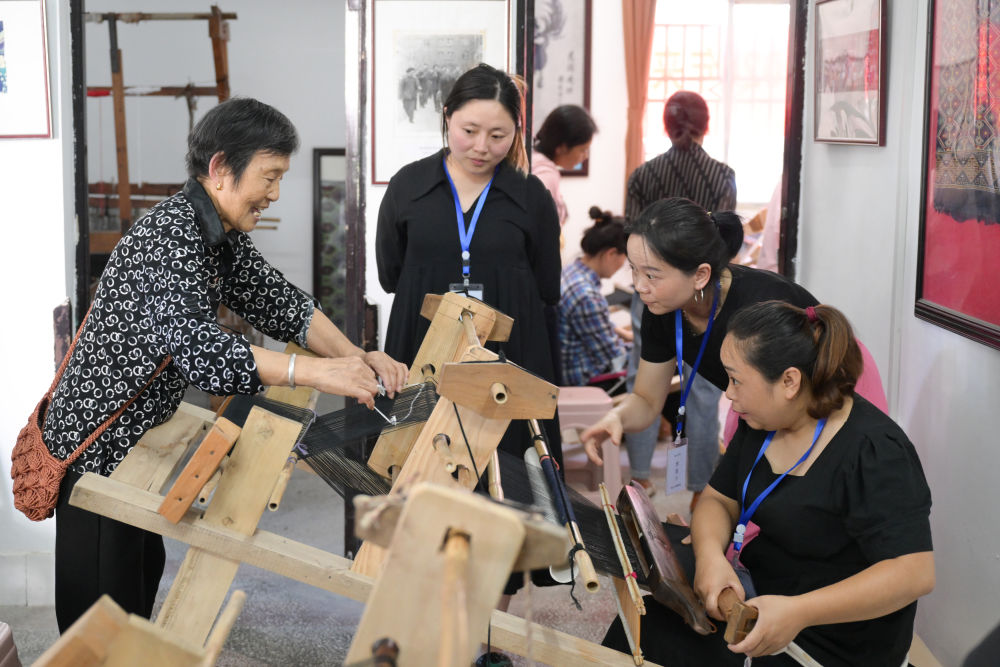 夏日的午后,湖北省恩施州來鳳縣桂花樹社區(qū)濃蔭如蓋,一座位于半坡的三層小樓里不時傳來木織機(jī)“吱呀”作響的聲音。