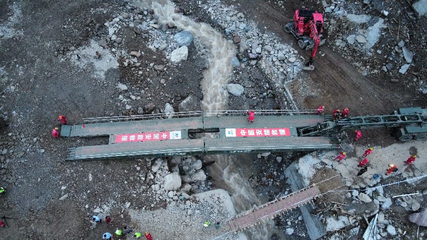 中國(guó)安能三局成功搶通雅安漢源馬烈鄉(xiāng)兩座受損橋梁。中國(guó)安能三局供圖