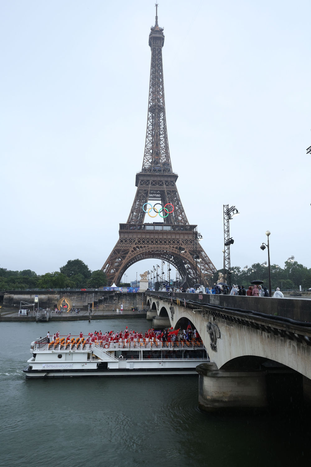 ↑中國(guó)體育代表團(tuán)成員在埃菲爾鐵塔前。新華社記者 李明攝