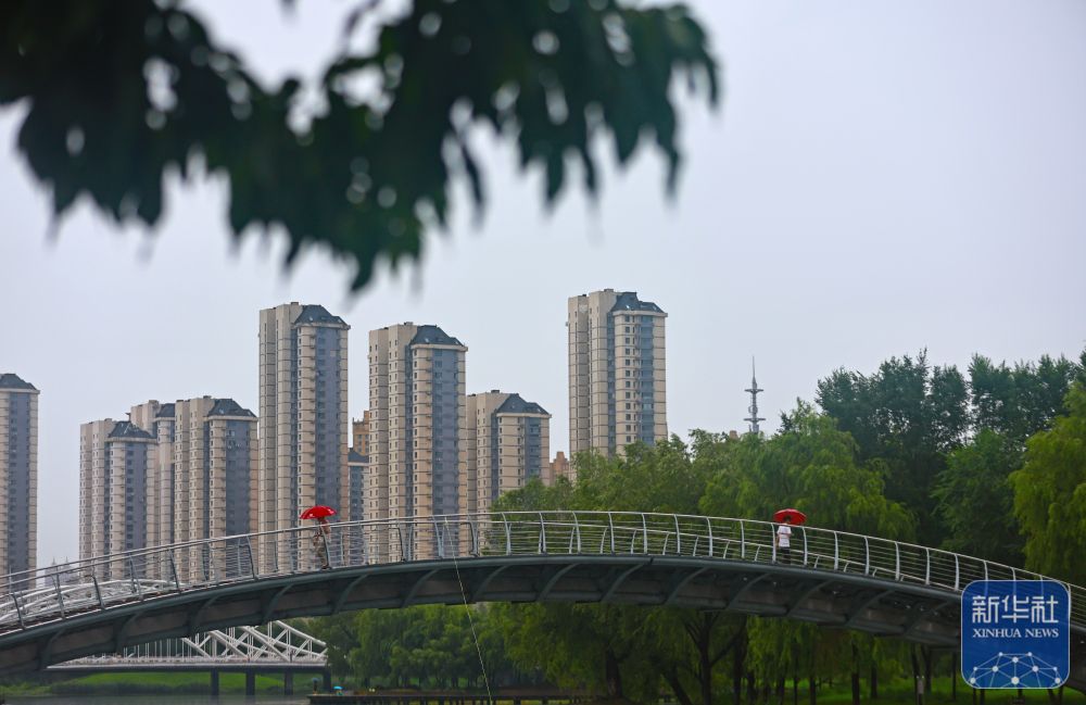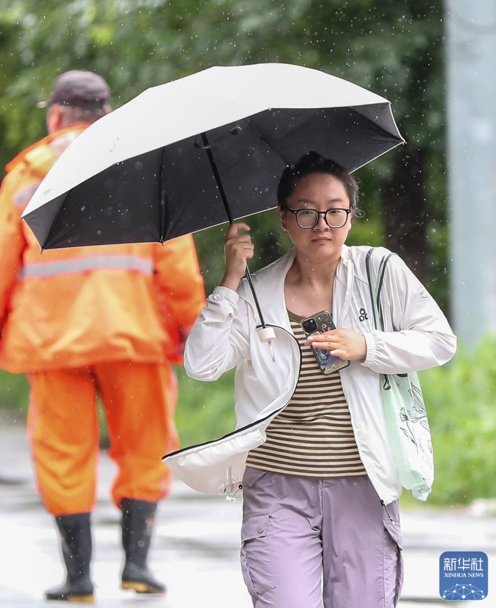 7月28日,在遼寧省沈陽市大東區(qū),市民在雨中出行?! ⌒氯A社記者龍雷攝