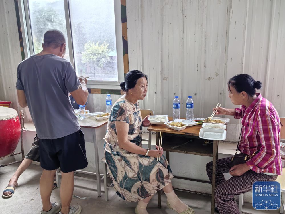 7月27日,在遼寧省鐵嶺縣大甸子鎮(zhèn),受災(zāi)群眾在安置點(diǎn)吃飯。 新華社發(fā)