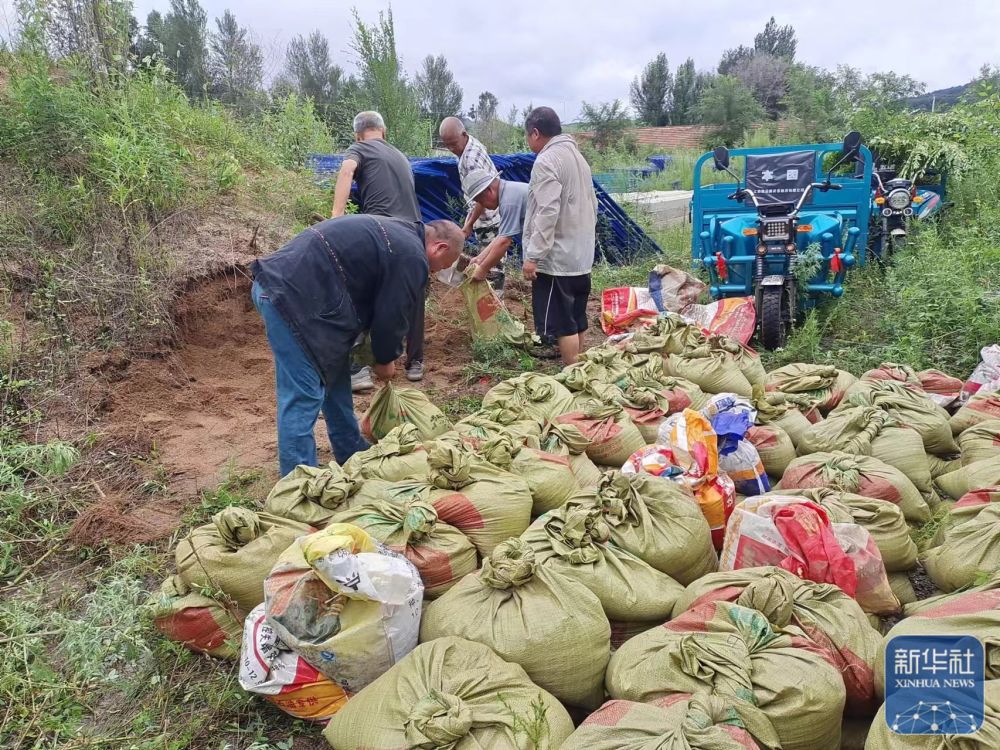 7月27日,遼寧省鐵嶺縣平頂堡鎮(zhèn)組織各村緊急裝運(yùn)沙袋,全鎮(zhèn)共準(zhǔn)備5000個沙袋迎戰(zhàn)強(qiáng)降雨?! ⌒氯A社發(fā)