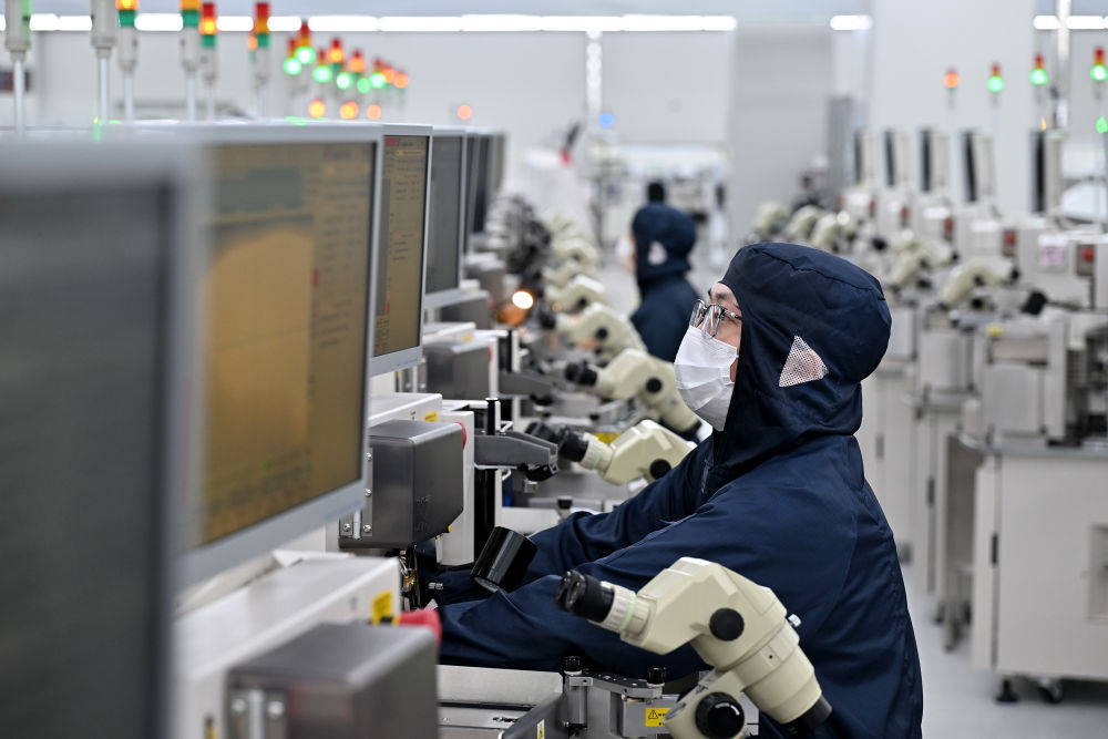 7月26日,湖南越摩先進半導(dǎo)體有限公司工作人員調(diào)試引線鍵合設(shè)備。新華社記者 李鑫 攝