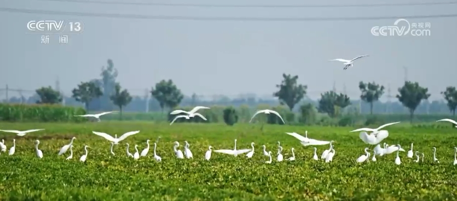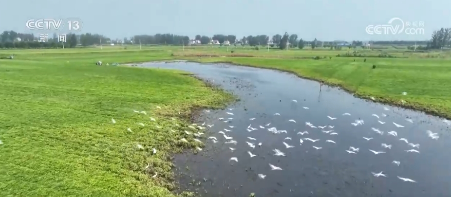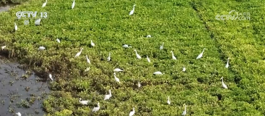 在河南周口市淮陽區(qū),由于近期降雨頻繁,當(dāng)?shù)毓胚\(yùn)河不少低洼地帶變成灘涂濕地,多群白鷺匯聚于此,棲息覓食。