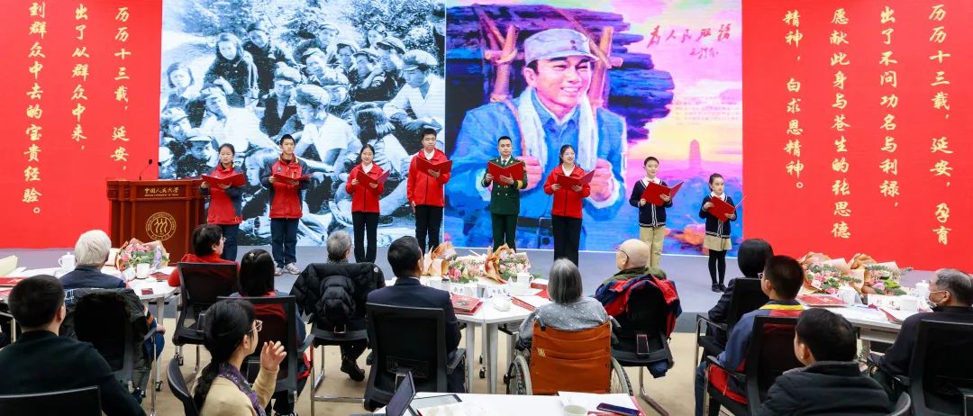 ▲活動現(xiàn)場,張思德生前所在部隊(duì)官兵與由中國人民大學(xué)、延安中學(xué)、人大附小學(xué)生組成的“延河講師團(tuán)”,共同帶來原創(chuàng)朗誦《我們從延安走來》。